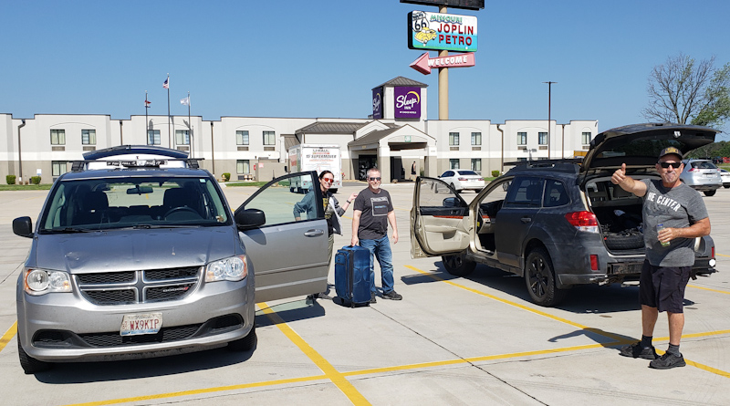 After breakfast, we headed down the road to meetup with Sean at a hotel lot just outside of Joplin. Warm greetings were followed by an impromptu briefing, during which Sean allayed any worries we had about the day’s chase. Today we’d be out there for fun, not driving into tornadoes, and Sean wholeheartedly agreed we should avoid chasing through the OKC area. In fact, Sean was totally chill and seemed to just be going along with the flow. We loaded luggage and equipment into Sean’s Subaru and then left my van behind in Joplin, making for Oklahoma.