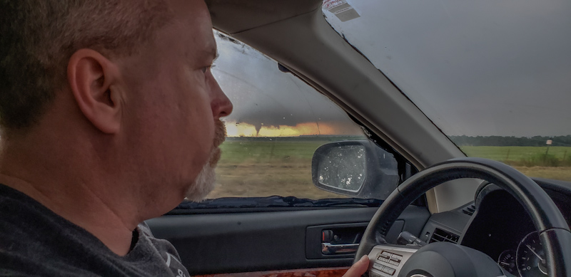 An extremely volatile dryline setup was taking shape over the heart of Tornado Alley on the Saturday of Memorial Day weekend. A tornado outbreak looked possible from southern Kansas through Oklahoma. I had been burned the last couple of big Southern Plains plays this season, and was a bit apprehensive about heading back, especially at the peak time and epicenter of storm chaser craziness. Then I got a call out of the blue from Sean Casey. “Let’s go chasing this weekend.” It had been years since I teamed up with Sean and his famous intercept vehicles designed to drive into tornadoes. The last I had heard, he was chasing in a specially modified Subaru Outback, getting stock shots for VFX compositing in the upcoming Twisters film. I was sold, but we were still short on crew. Sean wanted to be shooting, and I’d be nowcasting and navigating. We’d want dedicated drivers as well, so I called Chuck Haskin and Carrie Svihlik, fellow Illinois based chasers I had known for a few years. They sponsored my 2019 Chicago Marathon charity fundraiser run at the highest level, the reward for which was a Plains chasing trip with me. After five years of things getting in the way, we finally had a chance to make it happen. “Come chase a big Southern Plains event in a new Sean Casey intercept vehicle” I pitched, and they were in.