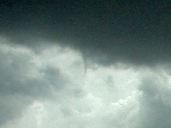 | The condensation takes on a more convincing funnel shape before it starts to fade. The funnel starts to rope out on the left side of the image: |