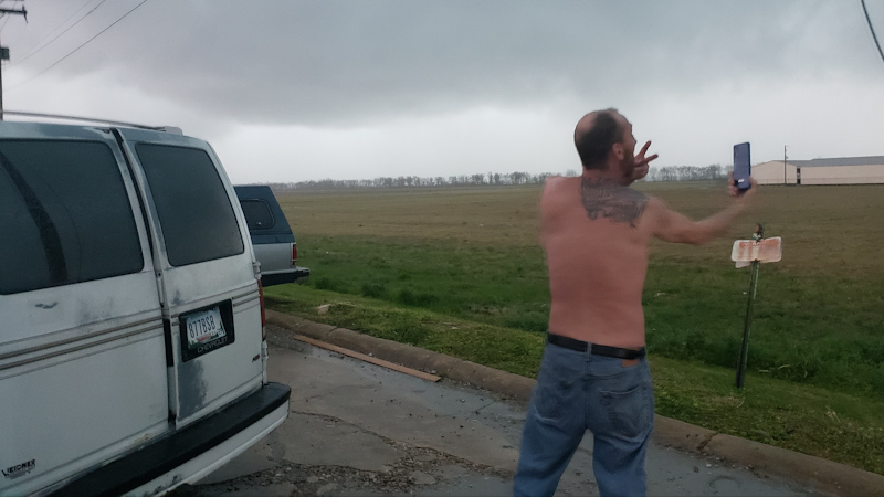 At the same time, my phone went off for a tornado warning that had been issued a couple minutes earlier, which is probably what also alerted the guy in the van.