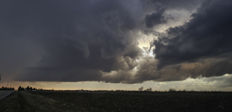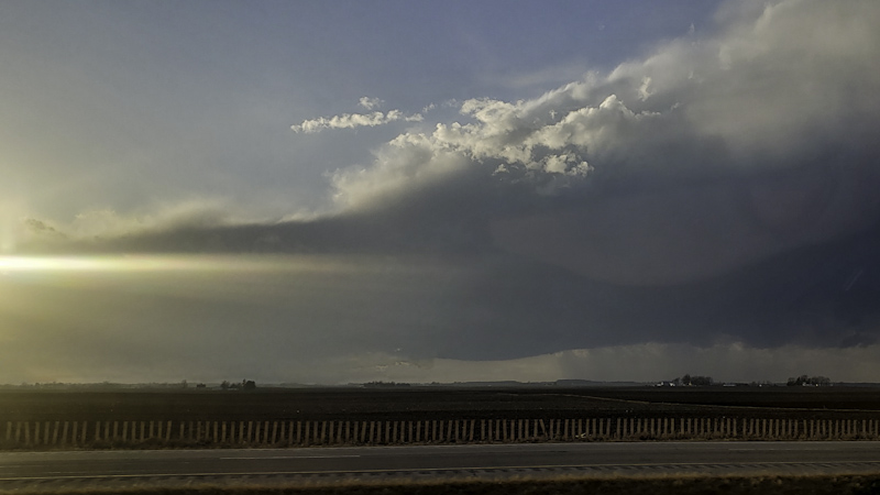 Low expectation early season chase across central Illinois. Watched sunset under pretty cloudscape before intercepting small but dramatic mini-supercell near Washington, IL.