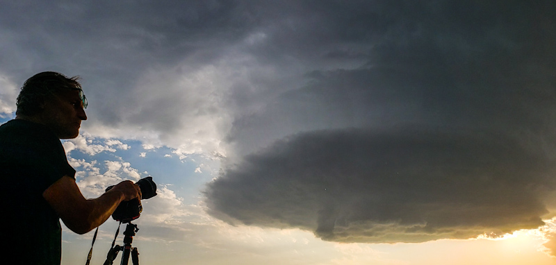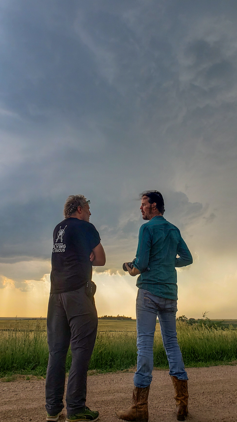 We stayed until dusk, some of the last chasers to leave. I wanted to lapse the very end of the storm and was still getting great colors as the light faded. Then we packed up and headed into town for dinner and a room. The only place open was a dive bar where we also met up with Daniel Shaw.